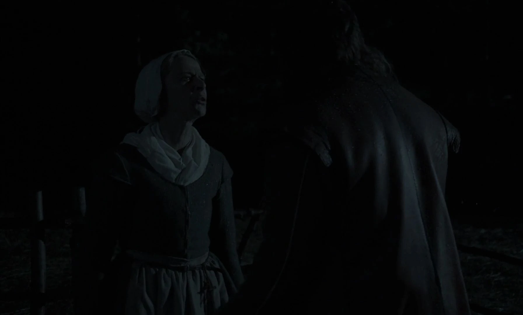 Later that night, William leads the family in prayer before they eat supper. Katherine asks Thomasin what she has done with the silver cup. Thomasin replies that she has not touched it, but Katherine does not believe her, even asking if a wolf took it like it did Samuel. The goats bleat outside and Katherine chides Thomasin for not penning them down before supper. Thomasin goes out to the pen and finds the hare in among the goats.