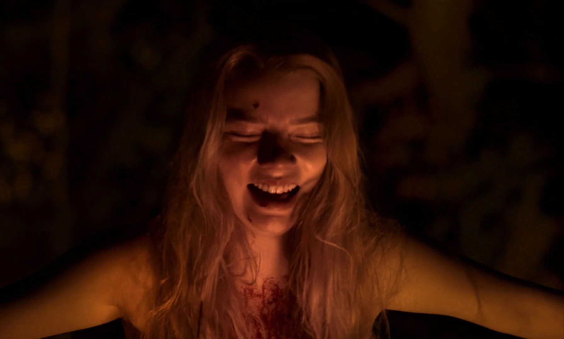 Now a goat again, Black Phillip leads the naked Thomasin out into the woods. They eventually reach a clearing, where a coven of naked witches stand around a bonfire, holding long branches and chanting in Enochian. As they finish their chant, the witches cackle and begin to float into the air. Thomasin begins to float too, and laughs hysterically as she rises up to the treetops.