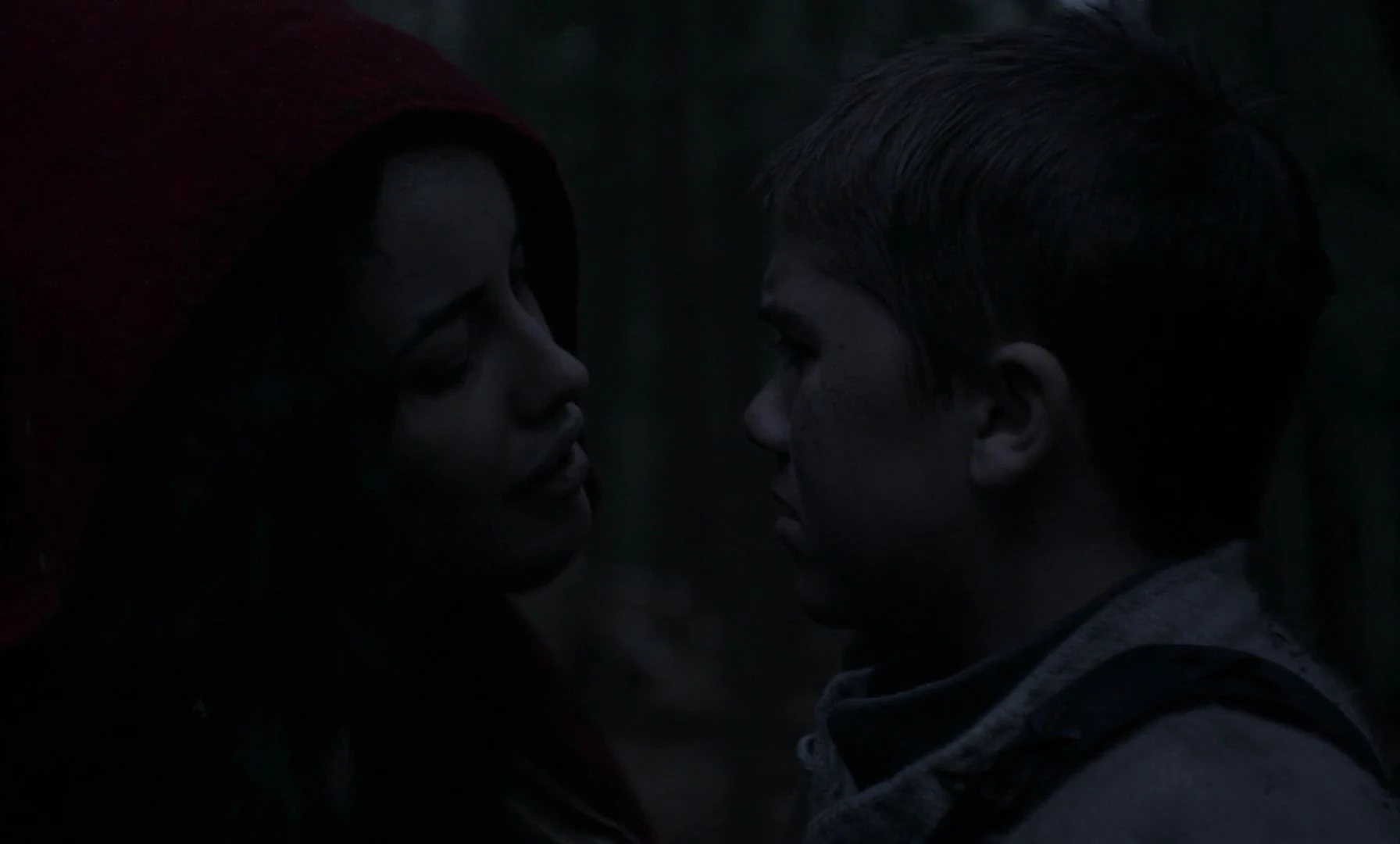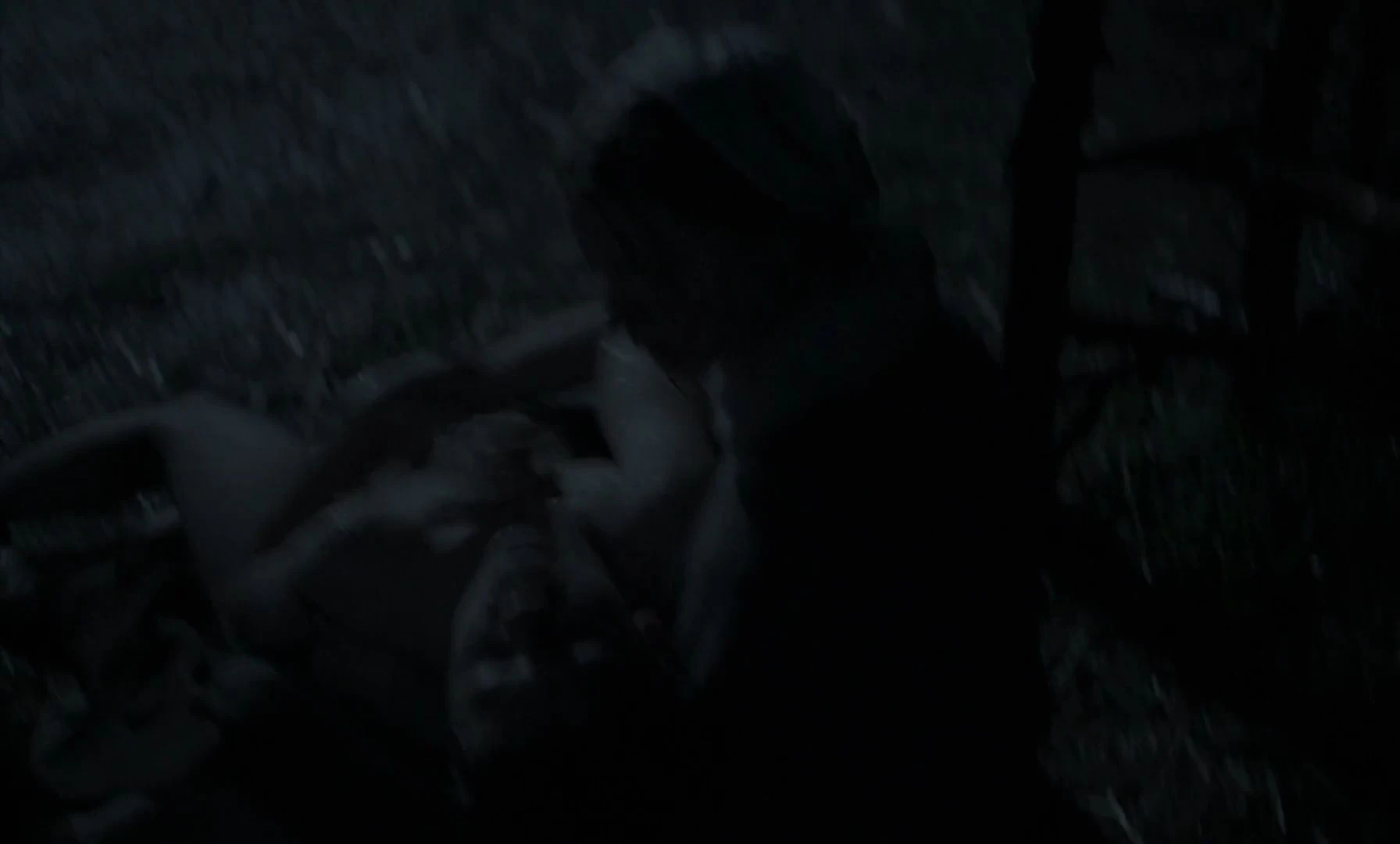 Later that evening, Jonas and Mercy are roped to a fence to prevent them from entering the woods. They call out for Thomasin and Caleb, as do William and Katherine at the edge of forest. Armed with the shotgun, Caleb calls out for Thomasin and unsuccessfully tries to whistles for Fowler. Panicking, he prays as he makes her way through the forest. He hears Fowler crying out in pain and runs towards the sound, only to find that the dog has been disembowled. Thomasin wakes and hears William crying out. She runs towards the sound and finds him. Caleb follows the hare through a thicket and reaches a hovel, where a beautiful, voluptuous young woman emerges. Caleb is terrified as she advances on him with a predatory look in her eyes. She kisses forcefully him and grabs the back of his head with a clawed, withered hand.